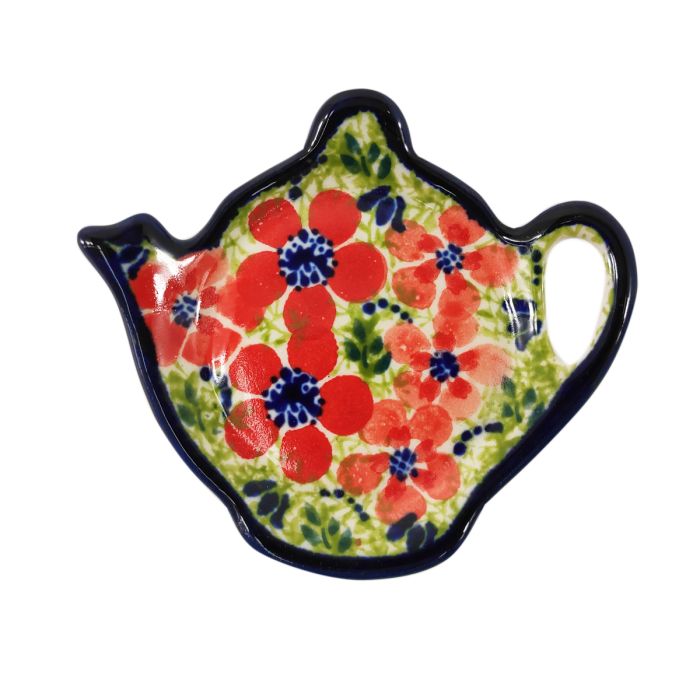 Podstawka czajniczek DU-205To jedna z unikatowych dekoracji, które charakteryzują się większą różnorodnością wzorów i kolorów niż tradycyjne. Tutaj bogaty wzór utrzymany w kolorach różnych odcieni zieleni i czerwieni z małymi dodatkami kobaltu jest aplikowany na całą powierzchnię ceramiki. Kwietna łąka, ogród? Możesz interpretować tę dekorację stołową jak chcesz.