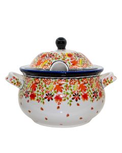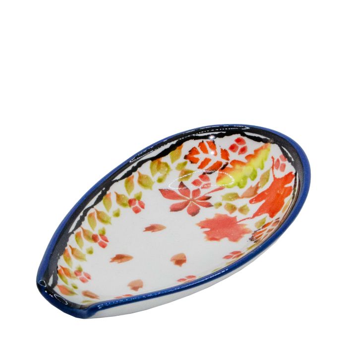 • Podobnie jak wszystkie produkty ceramiczne z Zakładów Ceramicznych "BOLESŁAWIEC", tace są ręcznie dekorowane za pomocą stempli i pędzli, dzięki czemu każda taca jest unikatowa, dlatego mogą występować minimalne różnice w dekoracji między poszczególnymi egzemplarzami w ramach tej samej dekoracjiA-1337AJeżeli lubicie jesienne klimaty, to dekoracja projektantki Barbary Morżkowskiej-Michalak jest właśnie dla Was. Kolorowa, wesoła – idealna na kubek z gorącą herbatą z dodatkiem cynamonu i imbiru. Przecież złota, polska jesień to jedna z najpiękniejszych pór roku. Zatem chyba nie macie wątpliwości, że warto mieć naczynia z motywem liści w odcieniach czerwieni, pomarańczu i brązu.