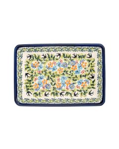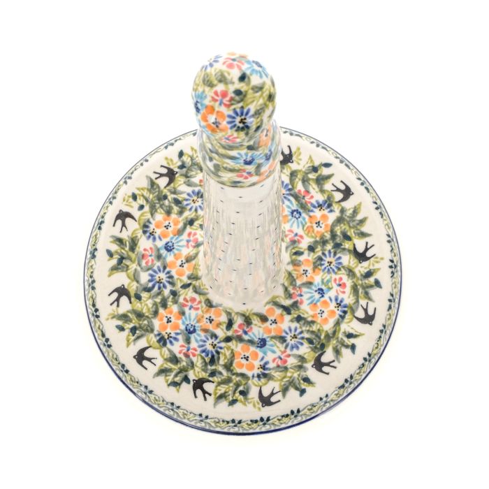 Stojak na ręcznikDU-182To jedna z unikatowych dekoracji, charakteryzujących się większą różnorodnością wzorów i kolorów niż tradycyjne motywy. Tutaj mamy kwietną łąkę, która pulsuje kolorami i kształtami. Niebieski, czerwony, pomarańczowy, kobalt, odcienie zieleni. I niespodzianka: unoszące się na horyzoncie jaskółki, zwiastuny wiosny. Piękna dekoracja będzie ozdobą każdego stołu.