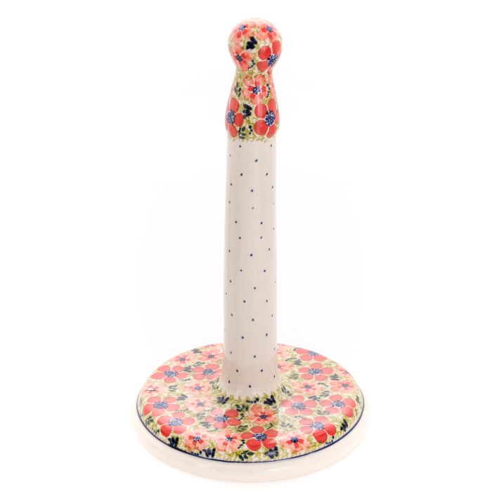 Stojak na ręcznikDU-205To jedna z unikatowych dekoracji, które charakteryzują się większą różnorodnością wzorów i kolorów niż tradycyjne. Tutaj bogaty wzór utrzymany w kolorach różnych odcieni zieleni i czerwieni z małymi dodatkami kobaltu jest aplikowany na całą powierzchnię ceramiki. Kwietna łąka, ogród? Możesz interpretować tę dekorację stołową jak chcesz.