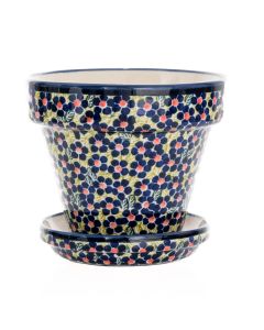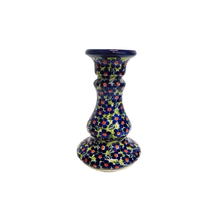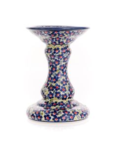 ŚwiecznikDU-206To jedna z unikatowych dekoracji, charakteryzujących się większą różnorodnością wzorów i kolorów niż w przypadku tradycyjnych dekoracji. Kobalt, tak charakterystyczny dla ceramiki bolesławieckiej, dominuje tutaj. Tym razem w formie małych kwiatów z pięcioma płatkami. Między nimi znajdują się liście w różnych odcieniach zieleni. Klasyczna ceramiczna elegancja w edycji kwiatowej.