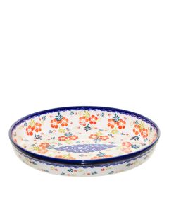 • Podobnie jak cała oferta Zakładów Ceramicznych „BOLESŁAWIEC”, również talerze zdobione są ręcznie przy użyciu stempli i pędzli, dzięki czemu każdy jest niepowtarzalny, dlatego mogą wystąpić minimalne różnice w dekoracji pomiędzy poszczególnymi egzemplarzami w ramach tej samej dekoracjiA-1306AEgzotyczny, pomarańczowo-czerwony kwiat hibiskusa i soczyste, zielone liście na bolesławieckiej ceramice? Dlaczego nie? Oceńcie sami, jak ten motyw zdobniczy zaproponowany przez projektantkę Barbarę Morżkowską-Michalak prezentuje się na ceramicznych naczyniach. Naszym zdaniem całkiem nieźle! P.S. Jest też kobaltowy szlaczek - chyba coś dla Was tradycjonaliści!