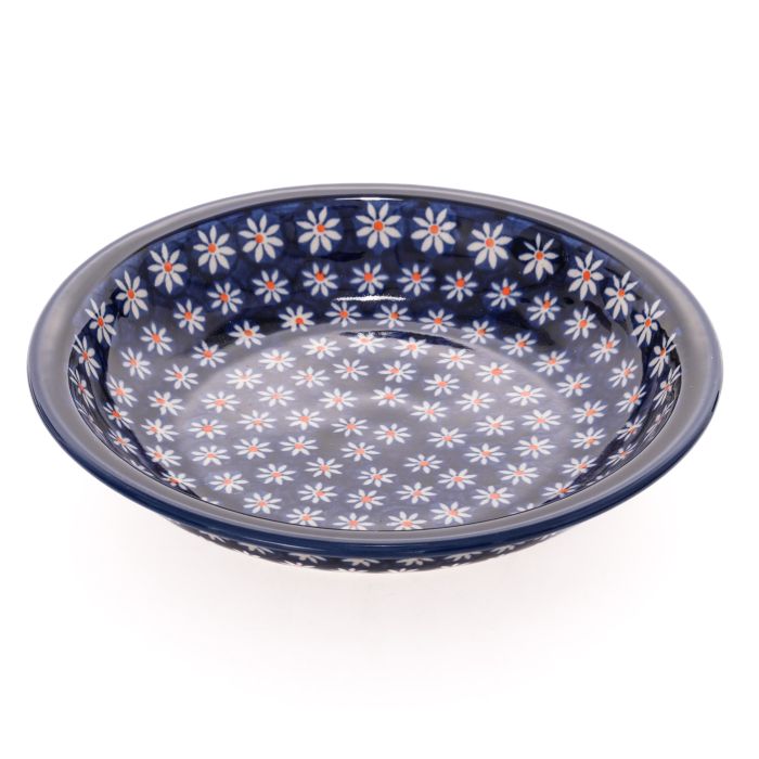 • Podobnie jak cała oferta produktów Zakładów Ceramicznych "BOLESŁAWIEC", talerze są również ręcznie dekorowane za pomocą stempli i pędzli, dzięki czemu każdy jest unikatowy, dlatego mogą występować minimalne różnice w dekoracji między poszczególnymi egzemplarzami tej samej dekoracjiD-1311ATo jedna z klasycznych dekoracji bolesławieckich naczyń. Przed naszymi oczami rozpościera się zachwycający dywan z drobnych kwiatków o płatkach w kolorze kobaltu i pomarańczowych środkach. Kwiatki są nanoszone na śmietankowe tło bardzo precyzyjnie i starannie jeden przy drugim, tak że lekko stykają się płatkami. To daje niesamowity efekt. Dekoracja dla koneserów.