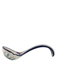 • Podobnie jak cała oferta Zakładów Ceramicznych „BOLESŁAWIEC”, również patery zdobione są ręcznie przy użyciu stempli i pędzli, dzięki czemu każdy z nich jest niepowtarzalny, dlatego mogą występować minimalne różnice w dekoracji pomiędzy poszczególnymi egzemplarzami w ramach tej samej dekoracjiDU-155To jedna z unikatowych dekoracji, charakteryzujących się większą różnorodnością wzorów i kolorów niż tradycyjne motywy. Tutaj mamy motyw kwiatowy, florystyczny. Trzy rodzaje kwiatów, liście, trawa. Układ pokazuje, że bardziej przypomina ogród niż łąkę. Szczególnie że widzimy szałwii i "przeszkody" starannie stemplowanych abstrakcyjnych wzorów. Nie brakuje również kolorów: jest kobalt, zieleń, błękit, czerwień, żółty. Ceramika z taką dekoracją stanowi piękną dekorację stołu.