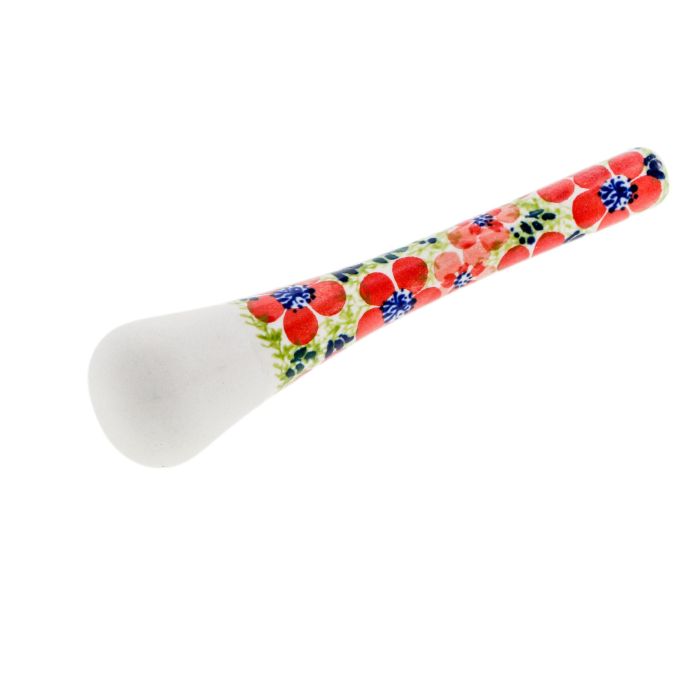 Tłuczek do moździerzaDU-205To jedna z unikatowych dekoracji, które charakteryzują się większą różnorodnością wzorów i kolorów niż tradycyjne. Tutaj bogaty wzór utrzymany w kolorach różnych odcieni zieleni i czerwieni z małymi dodatkami kobaltu jest aplikowany na całą powierzchnię ceramiki. Kwietna łąka, ogród? Możesz interpretować tę dekorację stołową jak chcesz.