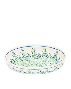 D-1208Motyw jagód na ceramice Bolesławiec to jedna z nowszych dekoracji, która zdobyła serca naszych klientów. Jej design nawiązuje do klasycznych kolorów - mamy jagody w kolorze kobaltu oraz liście i łodygi w zieleni. Na naczyniach udekorowanych w ten sposób dominuje kremowe tło, dzięki czemu są one optycznie lekkie. Jagody wywołują pozytywne skojarzenia z latem i słońcem, ale będą świetnym dodatkiem do stołu w każdej porze roku.