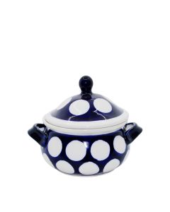 D-26Kolor kobaltowy i kremowy to zawsze doskonała kombinacja kolorów, która od dziesięcioleci pojawia się na ceramice. Ten dekor jest prosty, klasyczny, chociaż nie można jednoznacznie stwierdzić, że odnosi się do tradycji Bolesławca. Grochy? Kropki? Punkty? Nazwij to jak chcesz, ale koniecznie spróbuj, jak smakuje herbata w filiżance z takim motywem.