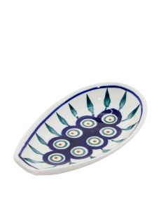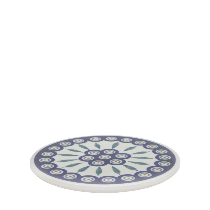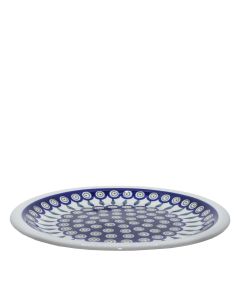 D-56Jedna z najstarszych i najbardziej klasycznych dekoracji Zakładów Ceramicznych „BOLESŁAWIEC” łącząca stemple w charakterystycznym wzorze „pawiego oczka” z ręcznie malowanymi listkami. Metoda stempelkowa to tradycyjna technika zdobienia naczyń sięgająca 1882 roku, kiedy to miejscowi garncarze wynaleźli dekorację wykonywaną za pomocą gąbki z użyciem farb podszkliwnych w intensywnych barwach kobaltu i zieleni. Mimo upływu wielu lat ta forma zdobienia pozostaje niezmiennie popularna wśród współczesnych miłośników ceramiki bolesławieckiej.