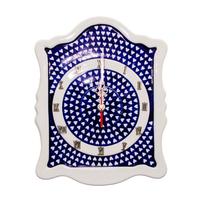 • Jak wszystkie wyroby ceramiczne produkowane przez Zakłady Ceramiczne "BOLESŁAWIEC", zegary również są ręcznie zdobione za pomocą stempli i pędzli, dzięki czemu każdy egzemplarz jest unikatowy.D-1044