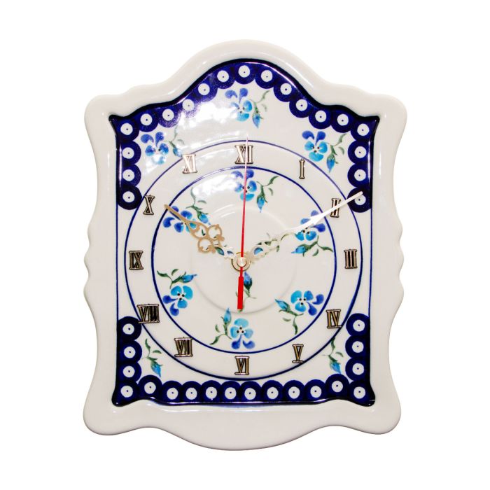• Jak wszystkie wyroby ceramiczne produkowane przez Zakłady Ceramiczne "BOLESŁAWIEC", zegary również są ręcznie zdobione za pomocą stempli i pędzli, dzięki czemu każdy egzemplarz jest unikatowy.D-890Dekoracja klasyczna z motywem fiołka wyróżnia się spośród innych dzięki precyzyjnemu cieniowaniu farb na płatkach kwiatu. To właśnie ta subtelna gra odcieni nadaje jej klasyczny charakter. Twórcza kombinacja kolorów w motywie kwiatowym jest nie tylko estetyczna, ale również wyjątkowo finezyjna, co nadaje dekoracji elegancji i ponadczasowego uroku.
